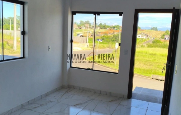 O imóvel conta com 2 dormitórios, banheiro social, cozinha e sala conjugada e uma vaga de garagem.